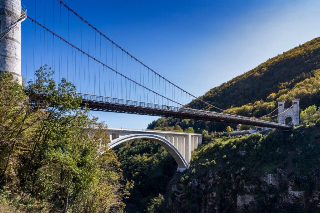 Sur la route entre Annecy et Genève, le Pont de la Caille (aussi appelé pont Charles-Albert) est un arrêt express, mais marquant : une passerelle-belvédère suspendue au-dessus des gorges des Usses, avec près de 150 mètres de vide sous les pieds. Le lieu est idéal pour une pause photo et une mini-balade, surtout si vous aimez les panoramas un peu vertigineux. À éviter si vous êtes sensible au vertige… et à privilégier hors heures de pointe, car le spot est connu des curieux de passage.