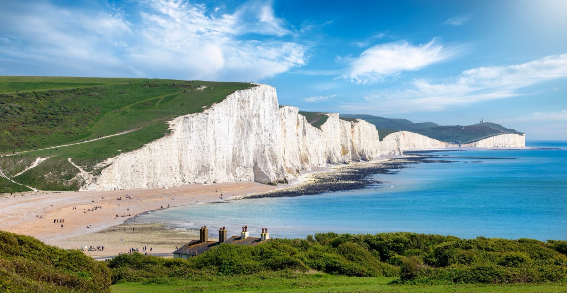 Situées entre Seaford et Eastbourne à quelques kilomètres de Brighton, les Seven Sisters comptent parmi les plus beaux sites naturels du Sussex. Les Seven Sisters sont une sécession de falaises de craie blanche au nombre de sept comme leur nom l’indique. Tombant à pic, ces falaises sont majestueuses et offrent des paysages spectaculaires le long de la Manche. Pour prendre de la hauteur sur la mer en restant vigilant ou admirer la blancheur des falaises depuis une plage, je vous conseille vivement d’inclure une randonnée ou une simple balade tranquille pour découvrir ce site remarquable. Si vous voulez profiter d’une vue spectaculaire sur les Seven Sisters, notez que vous pouvez rejoindre Birling Gap. Ce lieu est le début d’une des randonnées les plus connues sur les fameuses falaises blanches. Que vous souhaitiez ou non randonner, il offre un point de vue magnifique sur l’alignement des falaises.