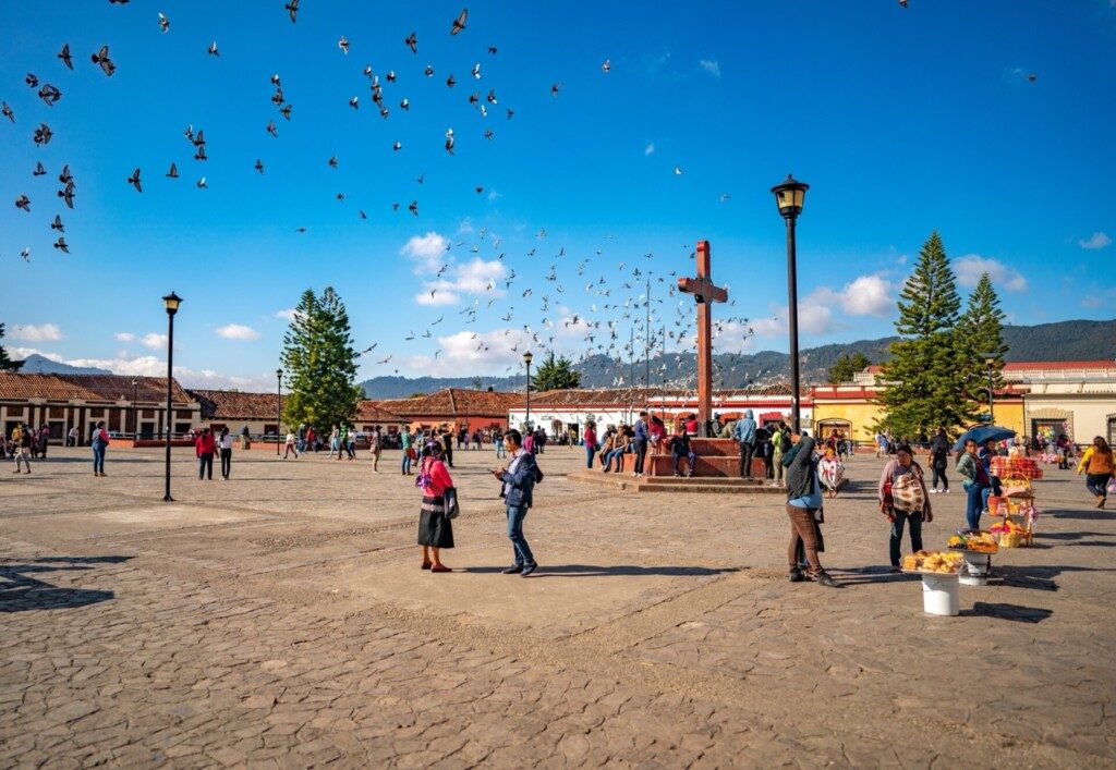 Perchée à plus de 2 000 mètres d’altitude dans les montagnes du Chiapas, San Cristóbal de las Casas offre un Mexique différent : plus frais, plus feutré, et terriblement attachant. On y vient pour ses ruelles pavées, ses façades colorées, ses églises discrètes et cette ambiance un peu artistique qui flotte entre cafés, marchés et ateliers.
